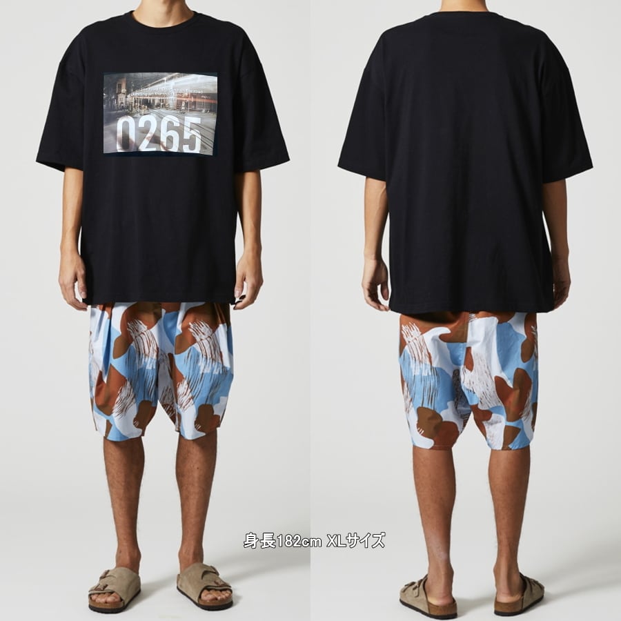 飯田線が通るゴールデン街の一角のフォトに、市外局番である「0265」、また伊那祭りのテーマソングである「Dancing in the rord」の歌詞の一部をデザインに落とし込んだグラフィックプリントTシャツです。