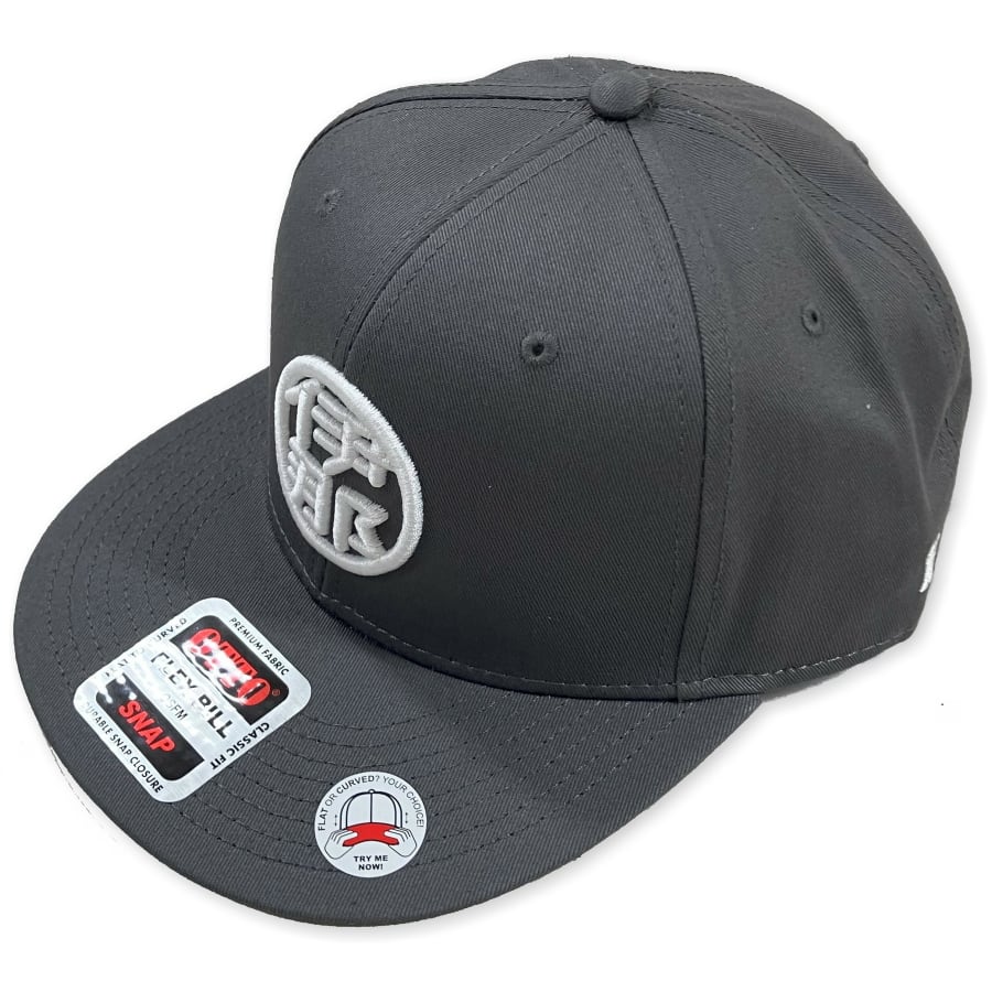 【INACITY APPAREL】フラットバイザーキャップ スナップバック チャコールグレー 漢字