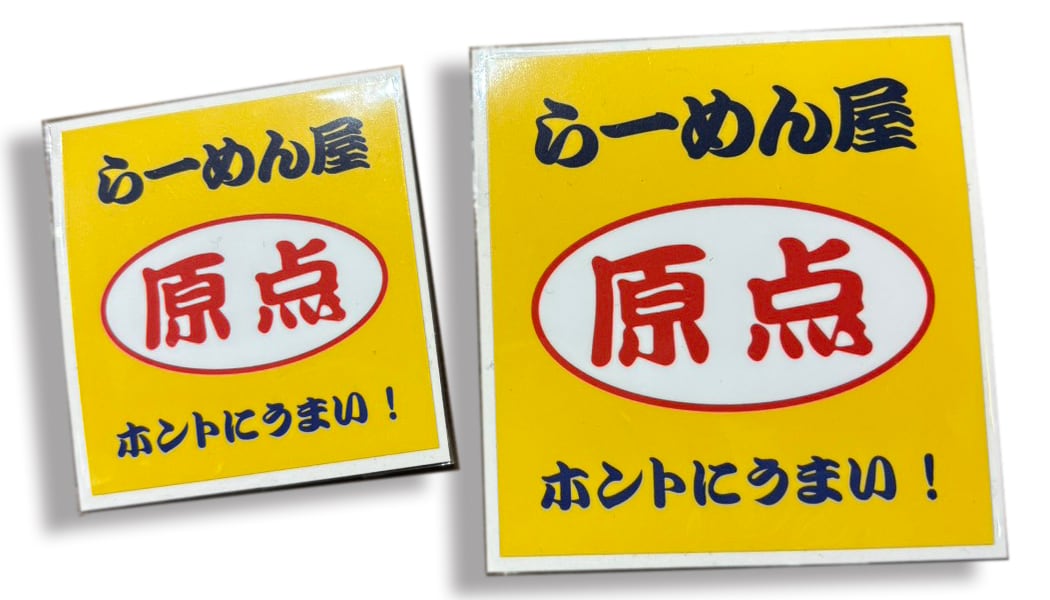 伊那市駅出口をそのまま直進してすぐに目に飛び込んでくる黄色い「原点」の文字のある看板。そちらをステッカーにさせていただきました。